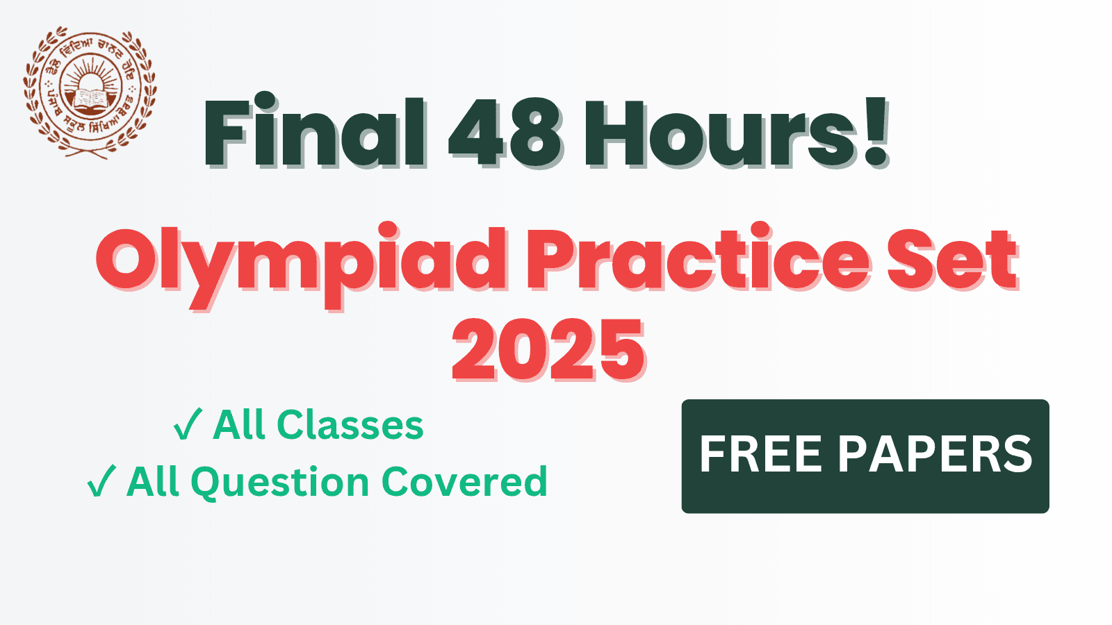 Punjabi Olympiad Sample Papers with Answers 2025 ਇੱਕ fast ਅਤੇ scoring exam ਹੈ, ਜਿਸ ਵਿੱਚ Class 3 ਤੋਂ 10 ਤੱਕ ਦੇ students ਨੂੰ 50 MCQs in 40 minutes attempt ਕਰਨੇ ਹੁੰਦੇ ਹਨ।